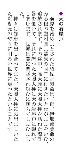 ◆天の石屋戸、稲作の起源などの神話が伝へられてゐます。