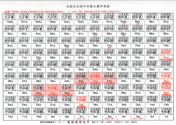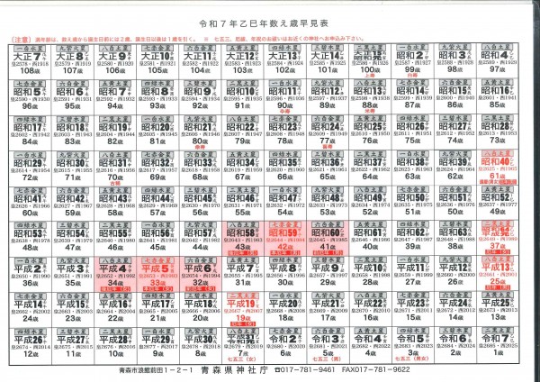 数へ歳早見表